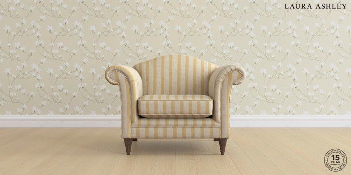 7.0.3 Buy Gloucester by Laura Ashley Armchair Kinsham Stripe Ochre Yellow Low Turned - Chestnut from the Next UK online shop Click here to use our accessible website