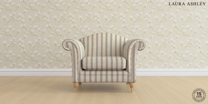 6.12.1 Buy Gloucester by Laura Ashley Armchair Kinsham Stripe Seaspray Blue Low Brass Castor - Light Oak from the Next UK online shop Click here to use our accessible website