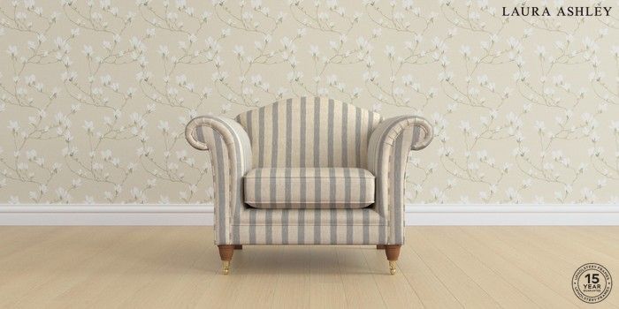 6.12.1 Buy Gloucester by Laura Ashley Armchair Kinsham Stripe Seaspray Blue Low Brass Castor - Teak from the Next UK online shop Click here to use our accessible website