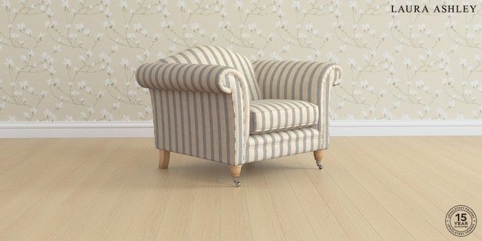 6.12.1 Buy Gloucester by Laura Ashley Armchair Kinsham Stripe Seaspray Blue Low Chrome Castor - Light Oak from the Next UK online shop Click here to use our accessible website