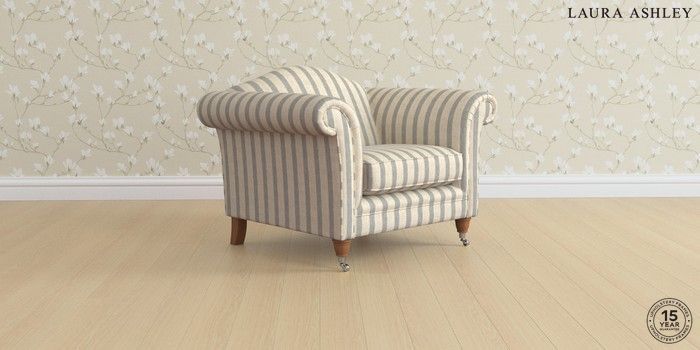 6.12.1 Buy Gloucester by Laura Ashley Armchair Kinsham Stripe Seaspray Blue Low Chrome Castor - Teak from the Next UK online shop Click here to use our accessible website