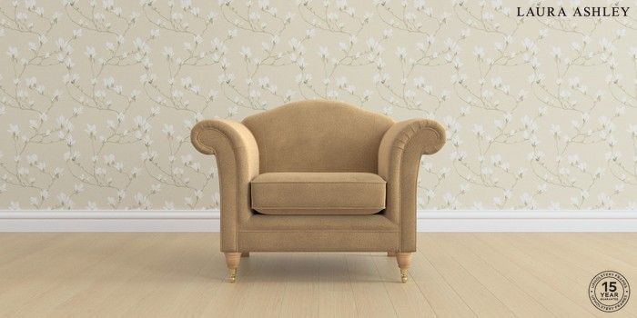 6.12.1 Buy Gloucester by Laura Ashley Armchair Lundar Chenille Caramel Natural Low Brass Castor - Light Oak from the Next UK online shop Click here to use our accessible website