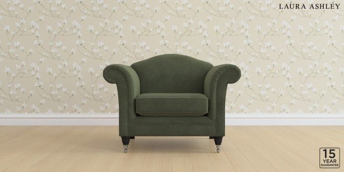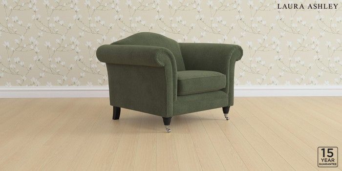 6.12.1 Buy Gloucester by Laura Ashley Armchair Lundar Chenille Ivy Green Low Chrome Castor - Black from the Next UK online shop Click here to use our accessible website