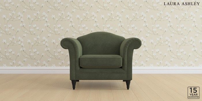 6.12.1 Buy Gloucester by Laura Ashley Armchair Lundar Chenille Ivy Green Low Turned - Black from the Next UK online shop Click here to use our accessible website