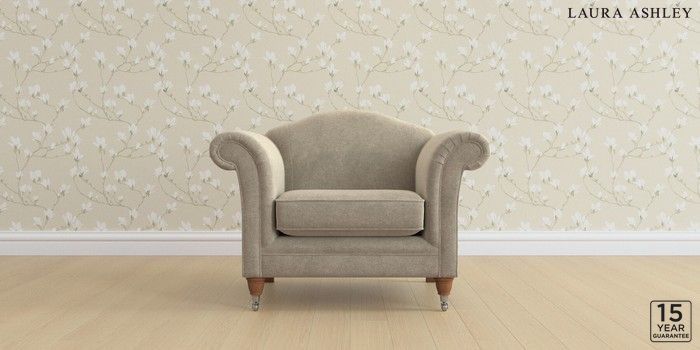 6.12.1 Buy Gloucester by Laura Ashley Armchair Lundar Chenille Truffle Natural Low Chrome Castor - Teak from the Next UK online shop Click here to use our accessible website