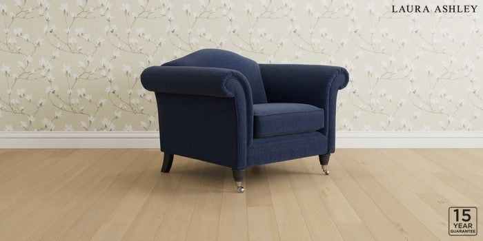 6.12.13 Buy Gloucester by Laura Ashley Armchair Nantmor Midnight Navy Low Chrome Castor - Black from the Next UK online shop Click here to use our accessible website