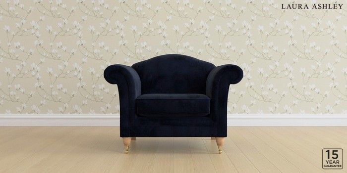 6.12.1 Buy Gloucester by Laura Ashley Armchair Orla Midnight Navy Low Brass Castor - Light Oak from the Next UK online shop Click here to use our accessible website
