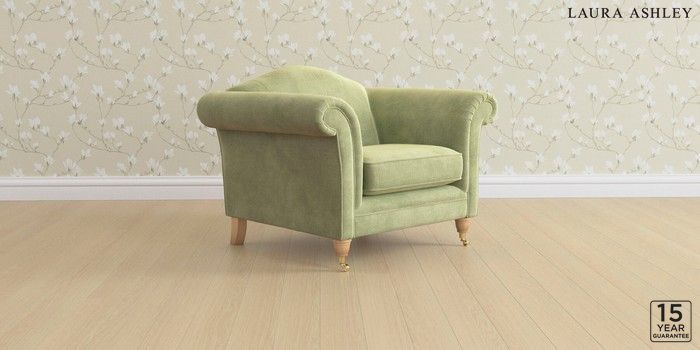 6.12.1 Buy Gloucester by Laura Ashley Armchair Orla Pale Hedgerow Green Low Brass Castor - Light Oak from the Next UK online shop Click here to use our accessible website