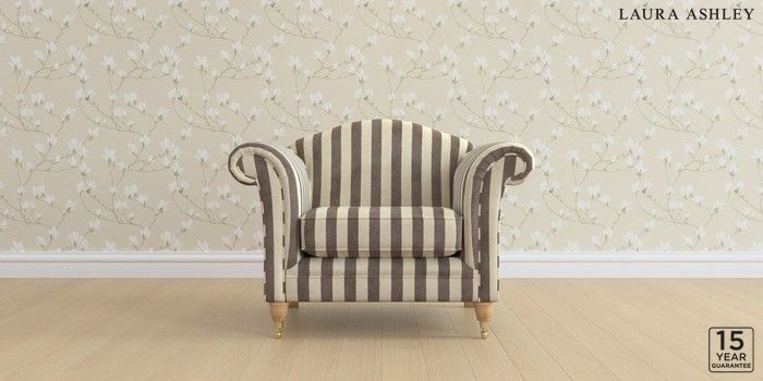 6.12.1 Buy Gloucester by Laura Ashley Armchair Orla Stripe Dark Truffle Natural Low Brass Castor - Light Oak from the Next UK online shop Click here to use our accessible website