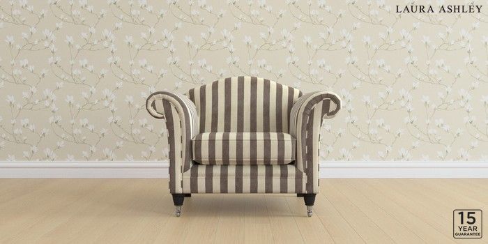 6.12.1 Buy Gloucester by Laura Ashley Armchair Orla Stripe Dark Truffle Natural Low Chrome Castor - Black from the Next UK online shop Click here to use our accessible website