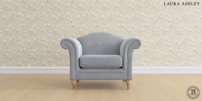 6.12.1 Buy Gloucester by Laura Ashley Armchair Peyton Powder Blue Low Chrome Castor - Light Oak from the Next UK online shop Click here to use our accessible website