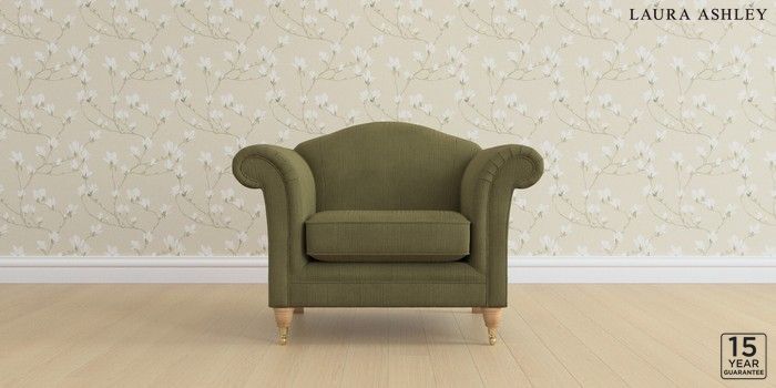6.12.1 Buy Gloucester by Laura Ashley Armchair Sinclair Cord Ivy Green Low Brass Castor - Light Oak from the Next UK online shop Click here to use our accessible website