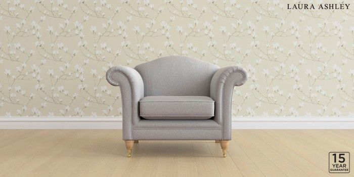 6.12.13 Buy Gloucester by Laura Ashley Armchair Wooton Pale Steel Grey Low Brass Castor - Light Oak from the Next UK online shop Click here to use our accessible website