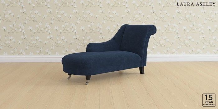 6.12.1 Buy Gloucester by Laura Ashley Chaise Longue Left Hand Alwyn Velvet Midnight Navy Low Chrome Castor - Black from the Next UK online shop Click here to use our accessible website