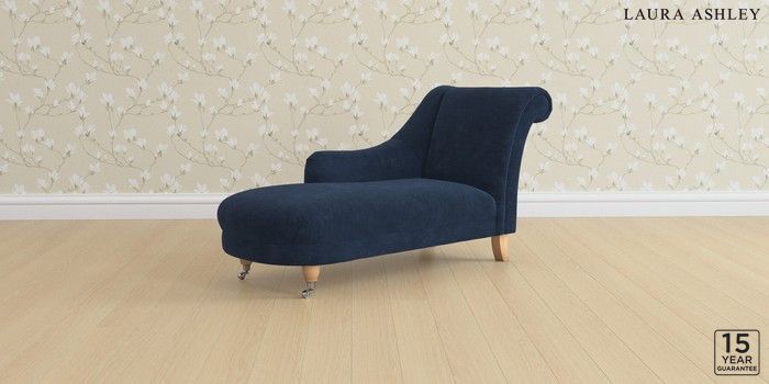6.12.1 Buy Gloucester by Laura Ashley Chaise Longue Left Hand Alwyn Velvet Midnight Navy Low Chrome Castor - Light Oak from the Next UK online shop Click here to use our accessible website