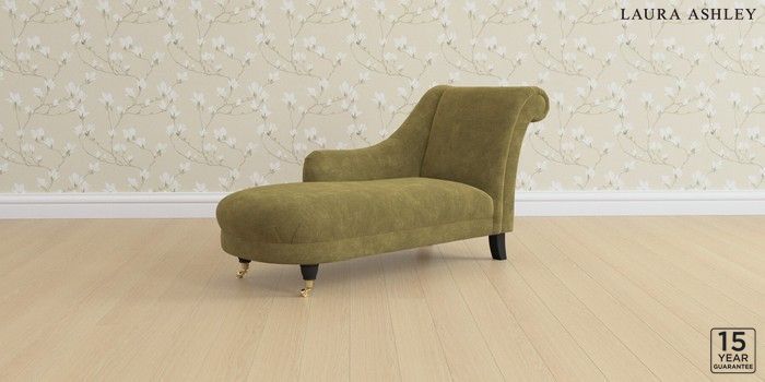 6.12.1 Buy Gloucester by Laura Ashley Chaise Longue Left Hand Alwyn Velvet Olive Green Low Brass Castor - Black from the Next UK online shop Click here to use our accessible website