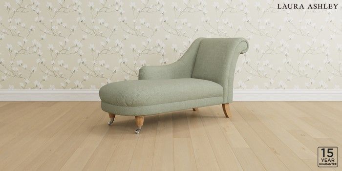 6.12.1 Buy Gloucester by Laura Ashley Chaise Longue Left Hand Anneliese Sage Green Low Chrome Castor - Light Oak from the Next UK online shop Click here to use our accessible website