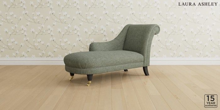 6.12.1 Buy Gloucester by Laura Ashley Chaise Longue Left Hand Bainton Sage Green Low Brass Castor - Black from the Next UK online shop Click here to use our accessible website