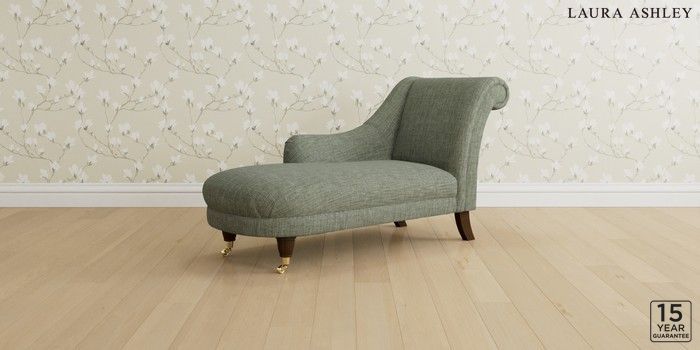 6.12.1 Buy Gloucester by Laura Ashley Chaise Longue Left Hand Bainton Sage Green Low Brass Castor - Chestnut from the Next UK online shop Click here to use our accessible website