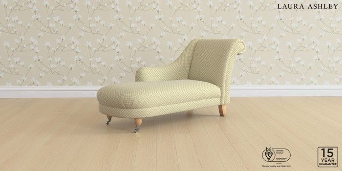 6.12.1 Buy Gloucester by Laura Ashley Chaise Longue Left Hand Chequers Hedgerow Green Low Chrome Castor - Light Oak from the Next UK online shop Click here to use our accessible website