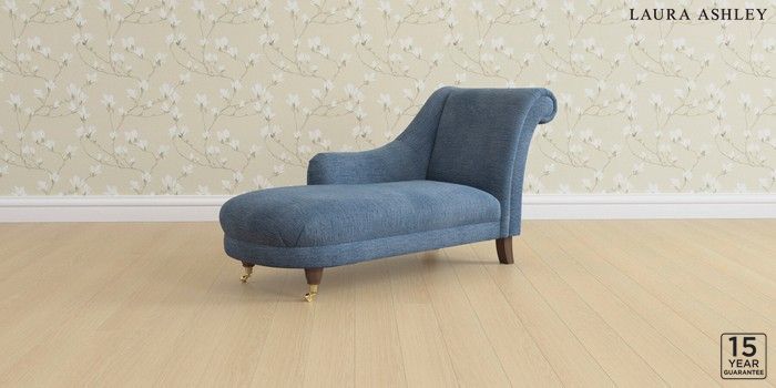 6.12.1 Buy Gloucester by Laura Ashley Chaise Longue Left Hand Edwin Chenille Seaspray Blue Low Brass Castor - Chestnut from the Next UK online shop Click here to use our accessible website