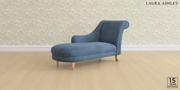 6.12.1 Buy Gloucester by Laura Ashley Chaise Longue Left Hand Edwin Chenille Seaspray Blue Low Turned - Light Oak from the Next UK online shop Click here to use our accessible website