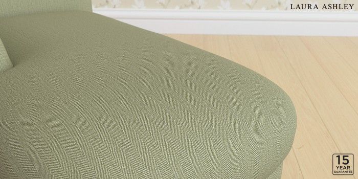 6.12.1 Buy Gloucester by Laura Ashley Chaise Longue Left Hand Edwin Herringbone Hedgerow Green Low Chrome Castor - Chestnut from the Next UK online shop Click here to use our accessible website
