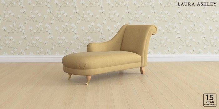 6.12.1 Buy Gloucester by Laura Ashley Chaise Longue Left Hand Kinsham Ochre Yellow Low Brass Castor - Light Oak from the Next UK online shop Click here to use our accessible website