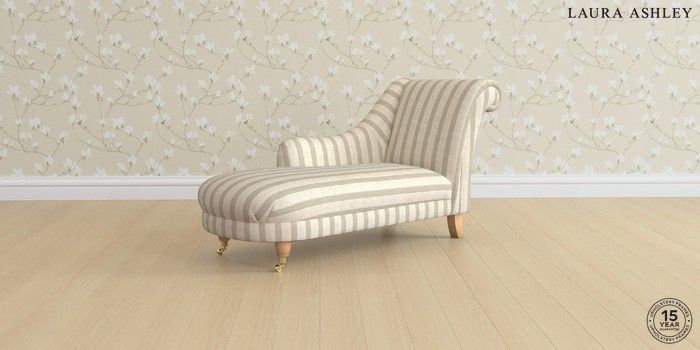 6.12.1 Buy Gloucester by Laura Ashley Chaise Longue Left Hand Kinsham Stripe Natural Low Brass Castor - Light Oak from the Next UK online shop Click here to use our accessible website