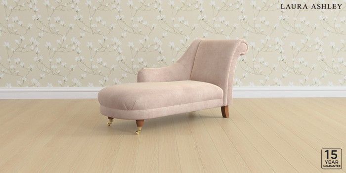 6.12.1 Buy Gloucester by Laura Ashley Chaise Longue Left Hand Orla Chalk Pink Low Brass Castor - Teak from the Next UK online shop Click here to use our accessible website