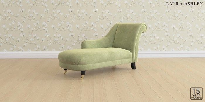 6.12.1 Buy Gloucester by Laura Ashley Chaise Longue Left Hand Orla Pale Hedgerow Green Low Brass Castor - Black from the Next UK online shop Click here to use our accessible website