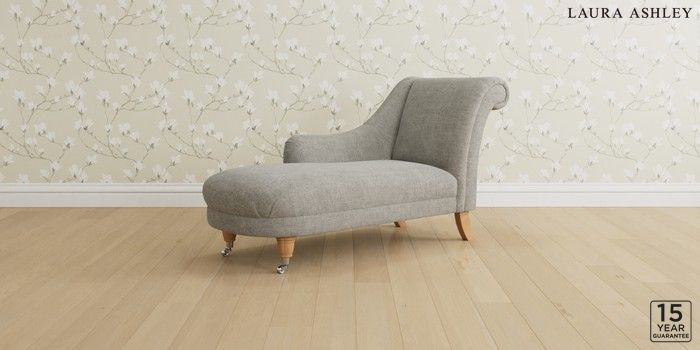 6.12.1 Buy Gloucester by Laura Ashley Chaise Longue Left Hand Orla Pale Steel Grey Low Chrome Castor - Light Oak from the Next UK online shop Click here to use our accessible website