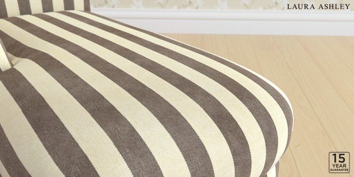6.12.13 Buy Gloucester by Laura Ashley Chaise Longue Left Hand Orla Stripe Dark Truffle Natural Low Chrome Castor - Teak from the Next UK online shop Click here to use our accessible website