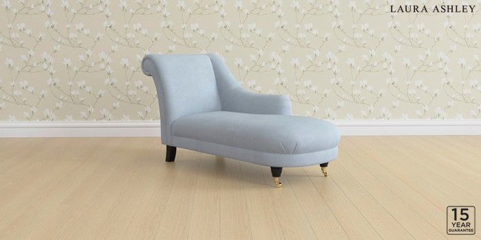 6.12.1 Buy Gloucester by Laura Ashley Chaise Longue Right Hand Ailsworth Newport Blue Low Brass Castor - Black from the Next UK online shop Click here to use our accessible website