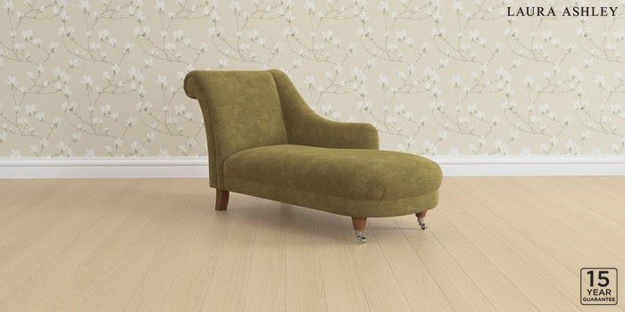 6.12.1 Buy Gloucester by Laura Ashley Chaise Longue Right Hand Alwyn Velvet Olive Green Low Chrome Castor - Teak from the Next UK online shop Click here to use our accessible website
