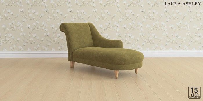 6.12.1 Buy Gloucester by Laura Ashley Chaise Longue Right Hand Alwyn Velvet Olive Green Low Turned - Light Oak from the Next UK online shop Click here to use our accessible website