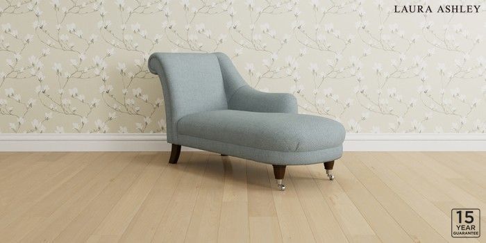 6.12.1 Buy Gloucester by Laura Ashley Chaise Longue Right Hand Anneliese Seaspray Blue Low Chrome Castor - Chestnut from the Next UK online shop Click here to use our accessible website