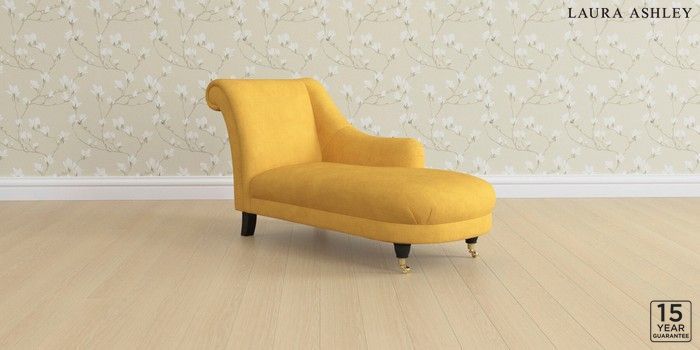 6.12.1 Buy Gloucester by Laura Ashley Chaise Longue Right Hand Bainton Ochre Yellow Low Brass Castor - Black from the Next UK online shop Click here to use our accessible website