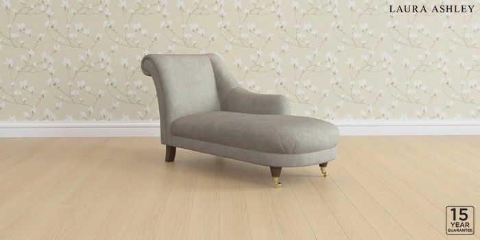 6.12.1 Buy Gloucester by Laura Ashley Chaise Longue Right Hand Bainton Pale Steel Grey Low Brass Castor - Chestnut from the Next UK online shop Click here to use our accessible website