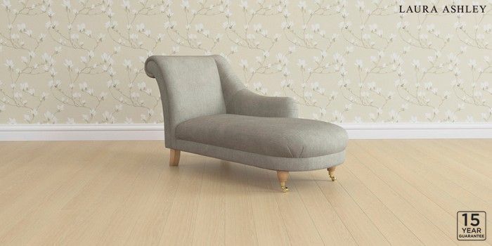6.12.1 Buy Gloucester by Laura Ashley Chaise Longue Right Hand Bainton Pale Steel Grey Low Brass Castor - Light Oak from the Next UK online shop Click here to use our accessible website