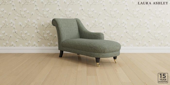 6.12.1 Buy Gloucester by Laura Ashley Chaise Longue Right Hand Bainton Sage Green Low Brass Castor - Black from the Next UK online shop Click here to use our accessible website