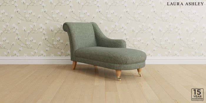 6.12.1 Buy Gloucester by Laura Ashley Chaise Longue Right Hand Bainton Sage Green Low Brass Castor - Light Oak from the Next UK online shop Click here to use our accessible website