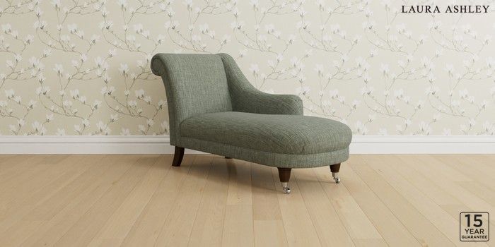 6.12.1 Buy Gloucester by Laura Ashley Chaise Longue Right Hand Bainton Sage Green Low Chrome Castor - Chestnut from the Next UK online shop Click here to use our accessible website