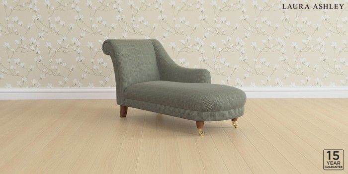 6.12.13 Buy Gloucester by Laura Ashley Chaise Longue Right Hand Birchgrove Check Olive Green Low Brass Castor - Teak from the Next UK online shop Click here to use our accessible website