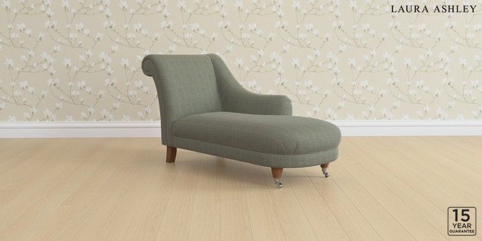 6.12.13 Buy Gloucester by Laura Ashley Chaise Longue Right Hand Birchgrove Check Olive Green Low Chrome Castor - Teak from the Next UK online shop Click here to use our accessible website