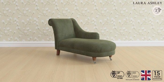 6.12.1 Buy Gloucester by Laura Ashley Chaise Longue Right Hand Edwin Chenille Hedgerow Green Low Chrome Castor - Teak from the Next UK online shop Click here to use our accessible website