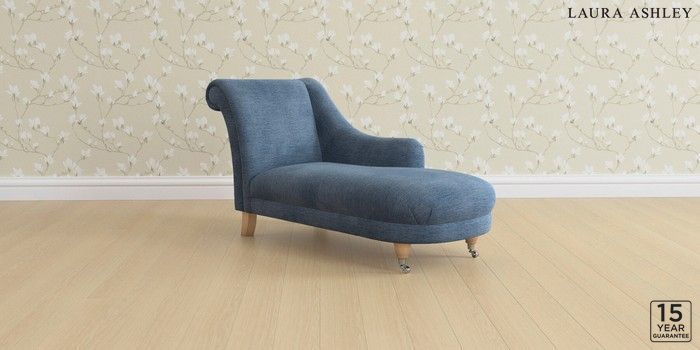 6.12.1 Buy Gloucester by Laura Ashley Chaise Longue Right Hand Edwin Chenille Seaspray Blue Low Chrome Castor - Light Oak from the Next UK online shop Click here to use our accessible website