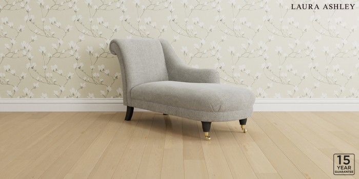 6.12.1 Buy Gloucester by Laura Ashley Chaise Longue Right Hand Edwin Chenille Silver Grey Low Brass Castor - Black from the Next UK online shop Click here to use our accessible website