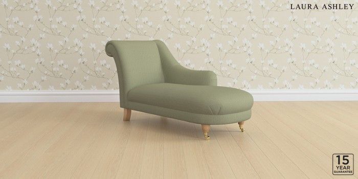 6.12.1 Buy Gloucester by Laura Ashley Chaise Longue Right Hand Edwin Herringbone Hedgerow Green Low Brass Castor - Light Oak from the Next UK online shop Click here to use our accessible website