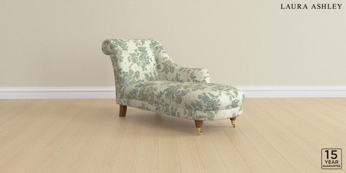 6.12.1 Buy Gloucester by Laura Ashley Chaise Longue Right Hand Ellerby Seaspray Blue Low Brass Castor - Teak from the Next UK online shop Click here to use our accessible website